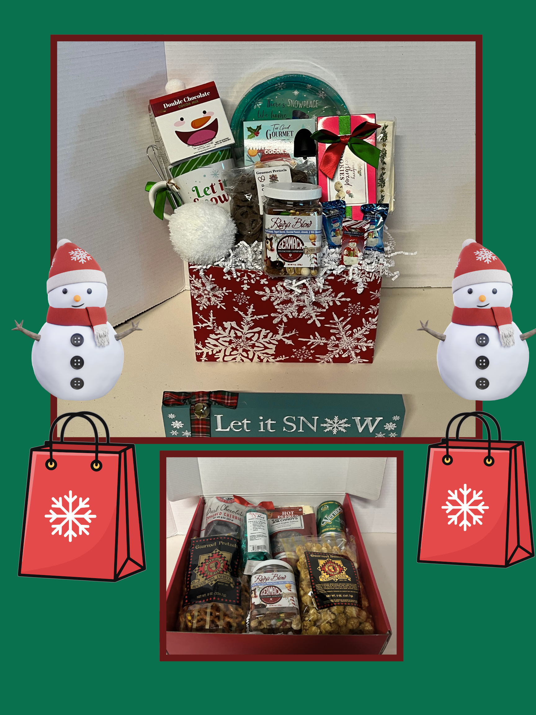 “Let It Snow” Holiday Gift Box — a curated collection of festive favorites for a touch of Christmas magic.